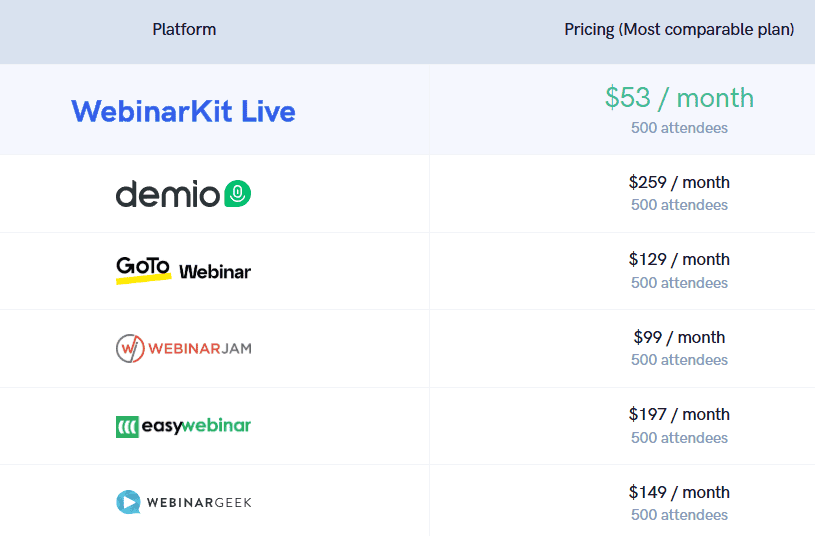 - GoToWebinar: $300+/month × 12 = $3,600+/year